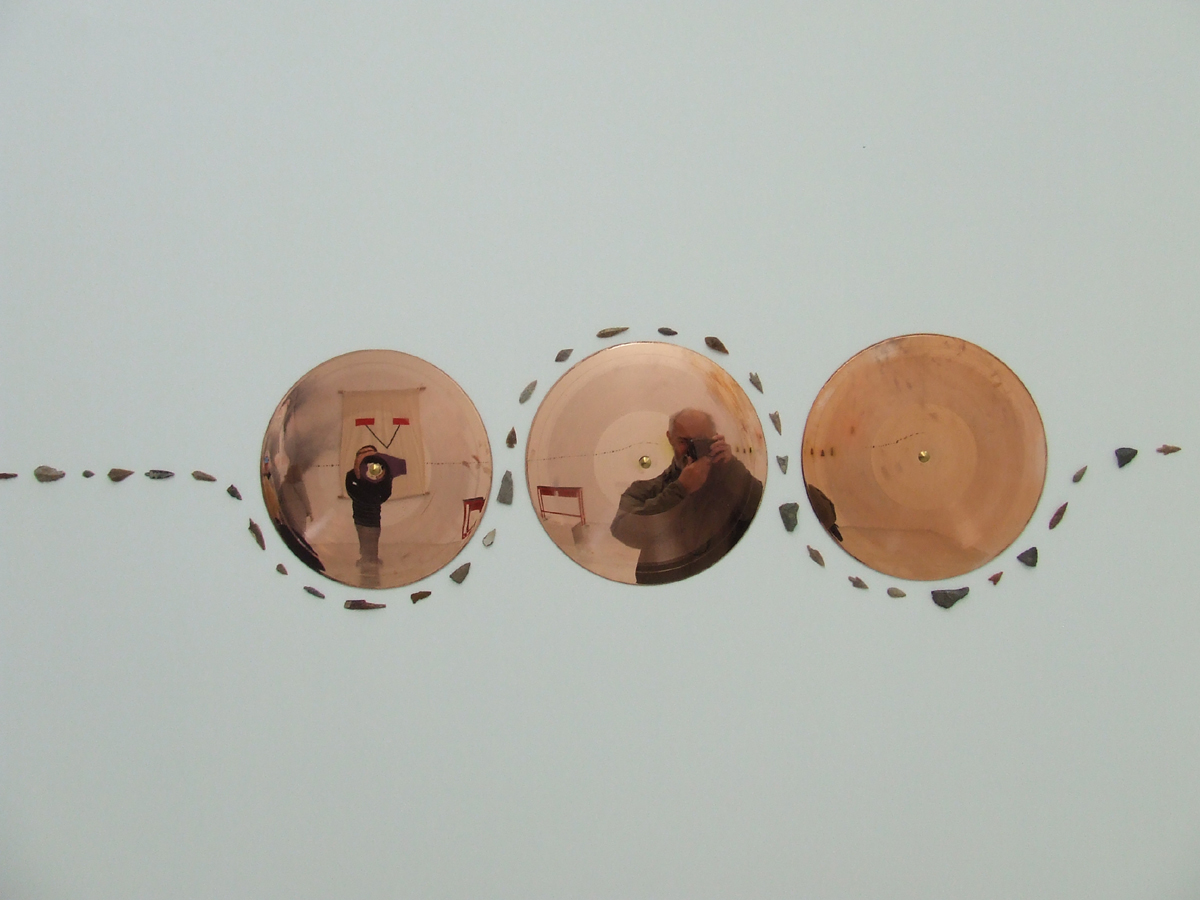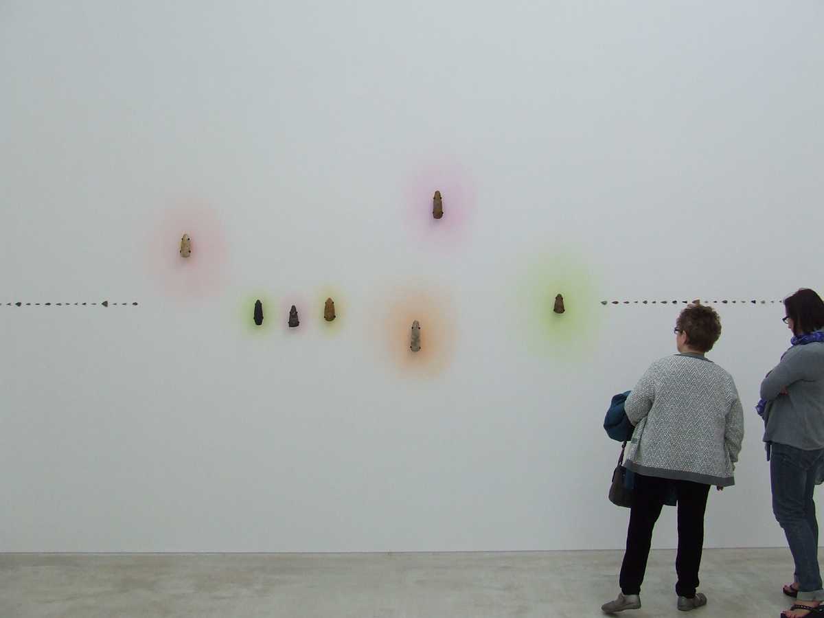 Neolithic Hand-Axes and arrowheads found along the Thames were also on display. Also in the mixed display are Soviet Bonds, William Morris textile blocks and tiles, William Turner watercolours, Prison inmate/war veteran drawings and John Ruskin drawings. A squashed four- wheel drive to sit on whilst watching a mesmerising Hi-Definition slow motion film of birds of prey adds to the Subtle spell of this show. A very timely and prescient statement.