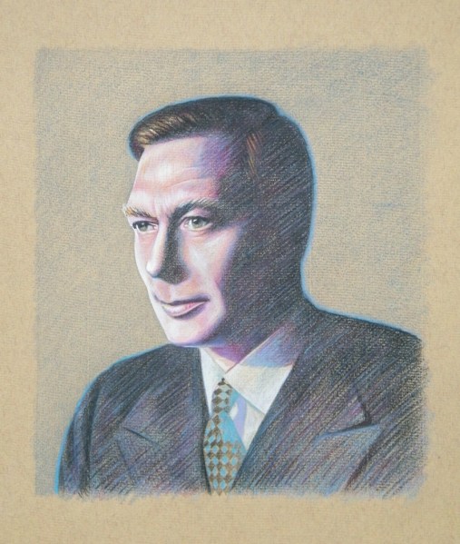 This portrait of George VI was recently returned to me by the Real World Design Group in San Francisco. Nine illustrator/ artists were commissioned to produce portraits of famous people who also happened to stutter. The poster below was designed and researched by Roland Addad and his team at Real World for the National Stuttering Project in 1986-ish?. After all these years it’s a pleasure to be reminded of the great design culture that existed before computers.
