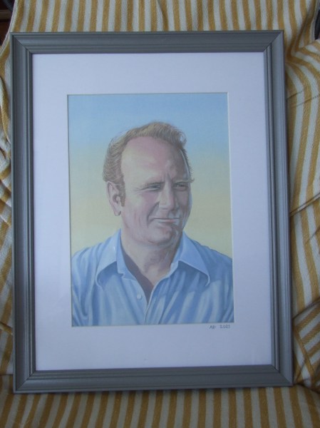 Here are a couple of portraits for my friend Andy in California. They are of his Dad Philip, the framed one is for his Mum here in England. They were painted in oils on board size A3.