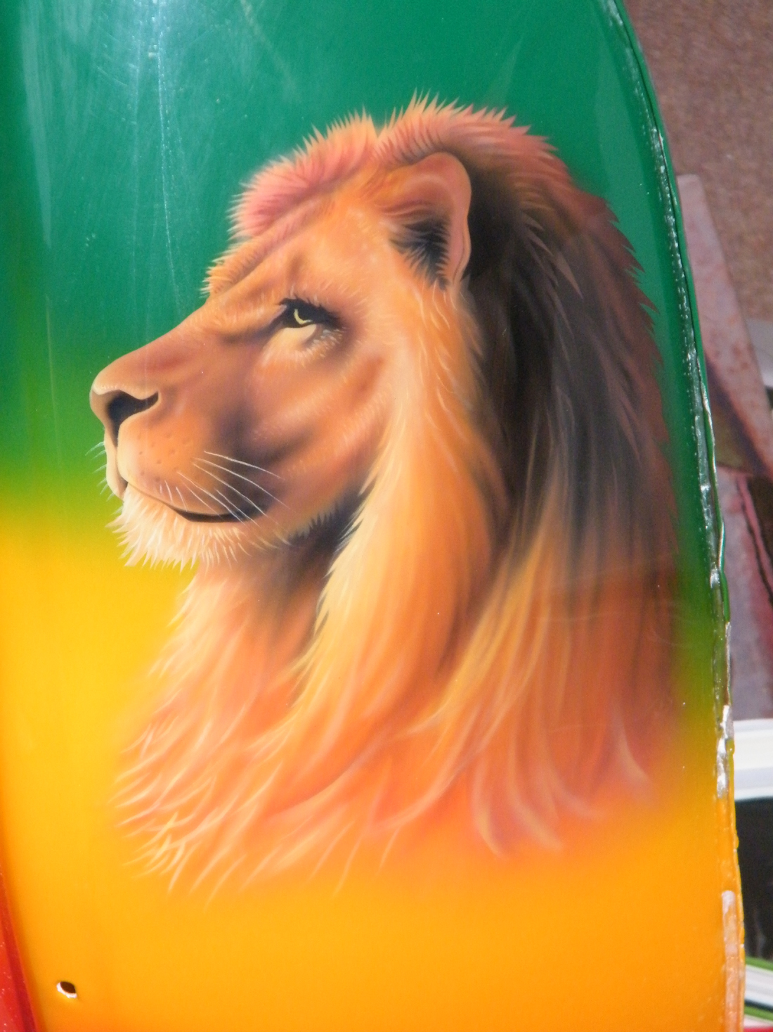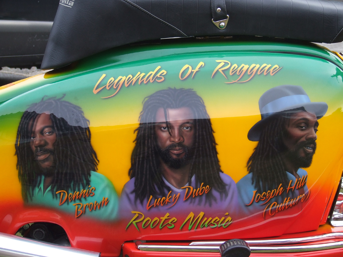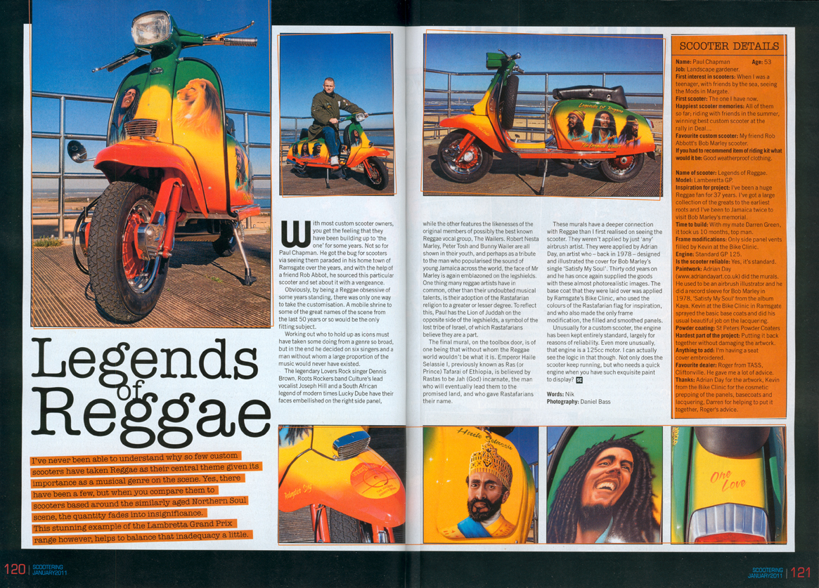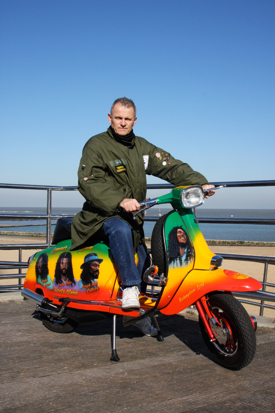 This Customised Lambretta was commissioned by Paul ‘Chappy’ Chapman and is his vision of a tribute to the legends of Reggae. The body work restoration and finish are by Kevin at the Bike Clinic. The work took about seven months and has won numerous awards at rallies around the country.